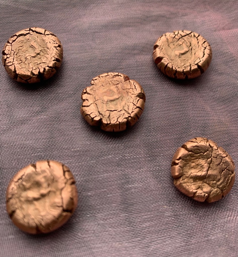 A special bunch of Chiron amulets from his last moments in Pisces, highlighting the spiritual healing potential of this final sign. These receive a powerful boost of lunar energy from the Moon’s power-spot in Cancer. Cast 2/16/19 2:30PM, when Chiron was at the Midheaven while the Moon rose in its domicile.